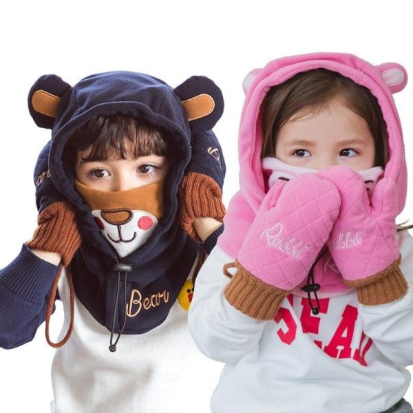 子供の冬の漫画手袋クマ耳冬パッチワーク保温ミトン手袋かわいいベビー手袋保護面新生児 Gloves Mittens Aliexpress